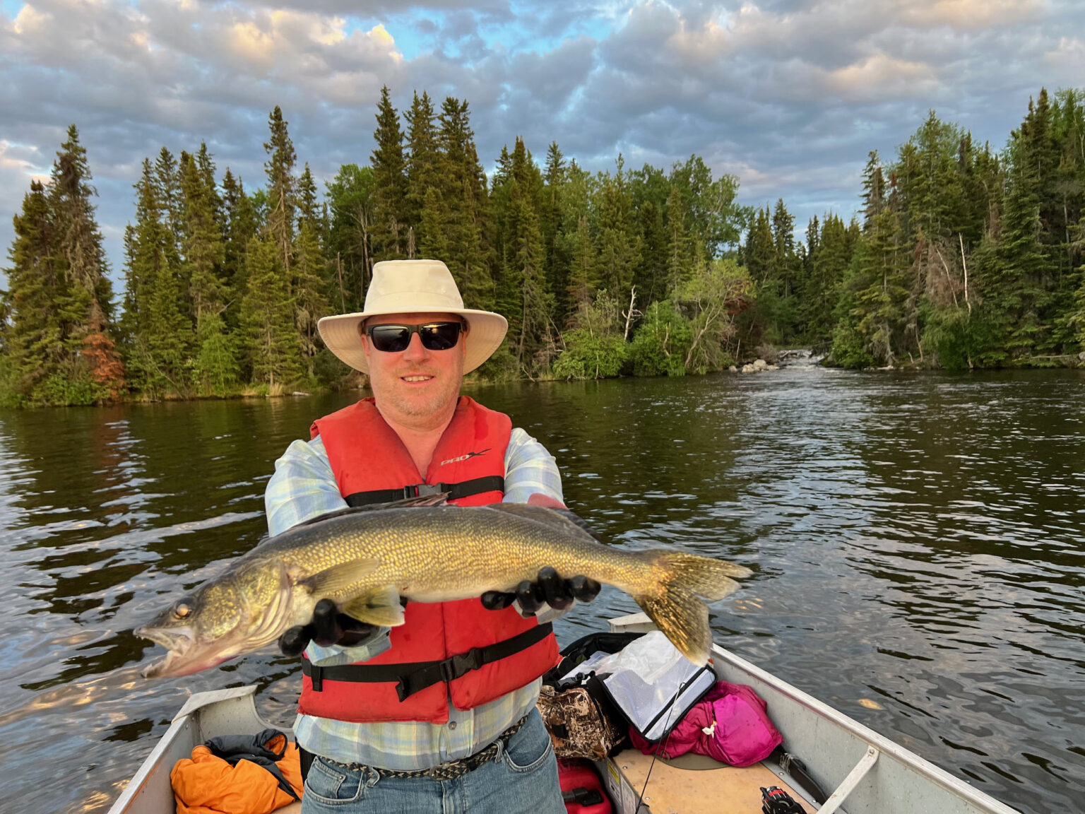 … it was a fun week. It’s neat having two lakes close to each other. If it’s windy, you can pick the lake, which is easiest to boat in. There’s a creek that goes from Golden to Jones right north of the camp, and you can always catch fish below the rapids….